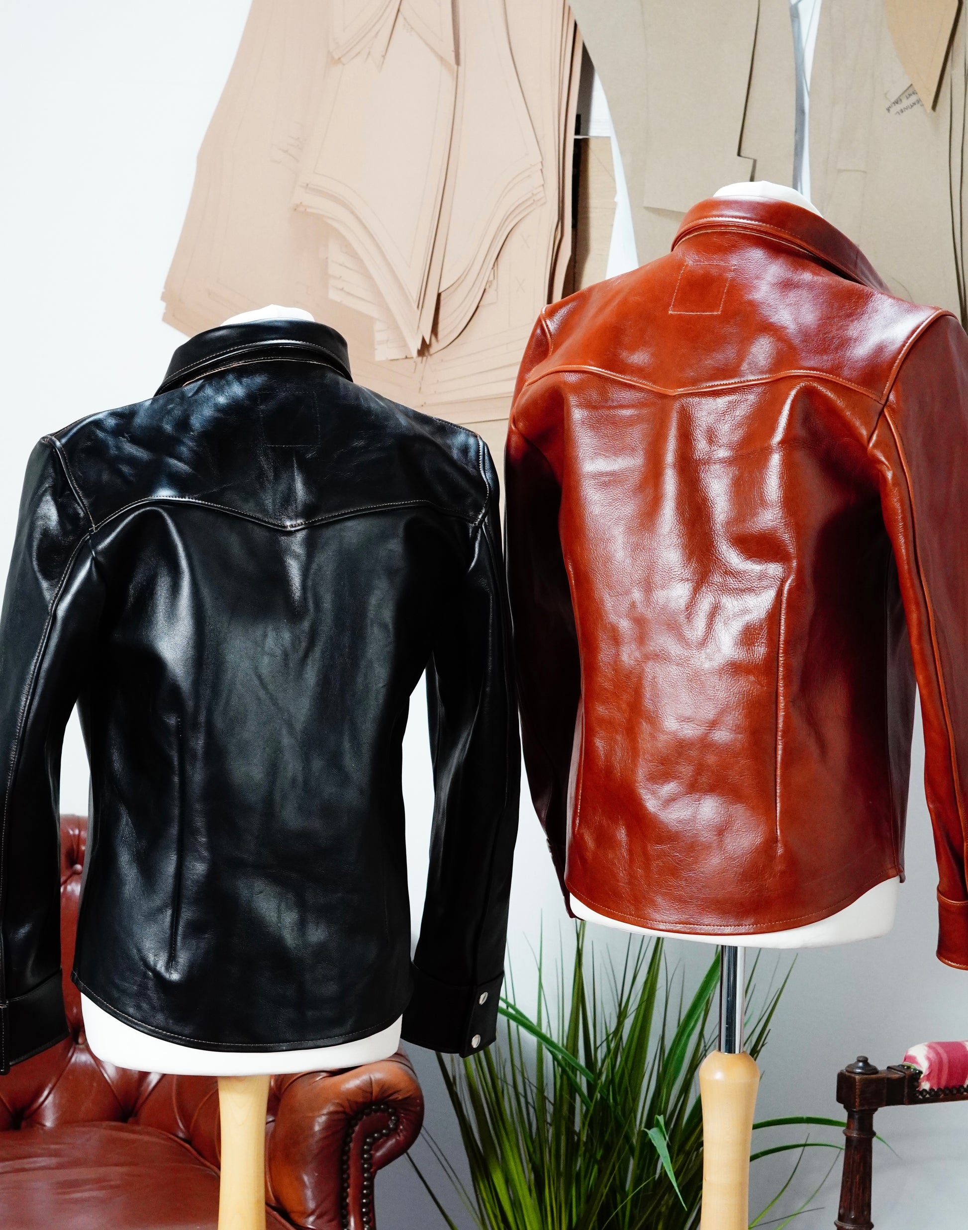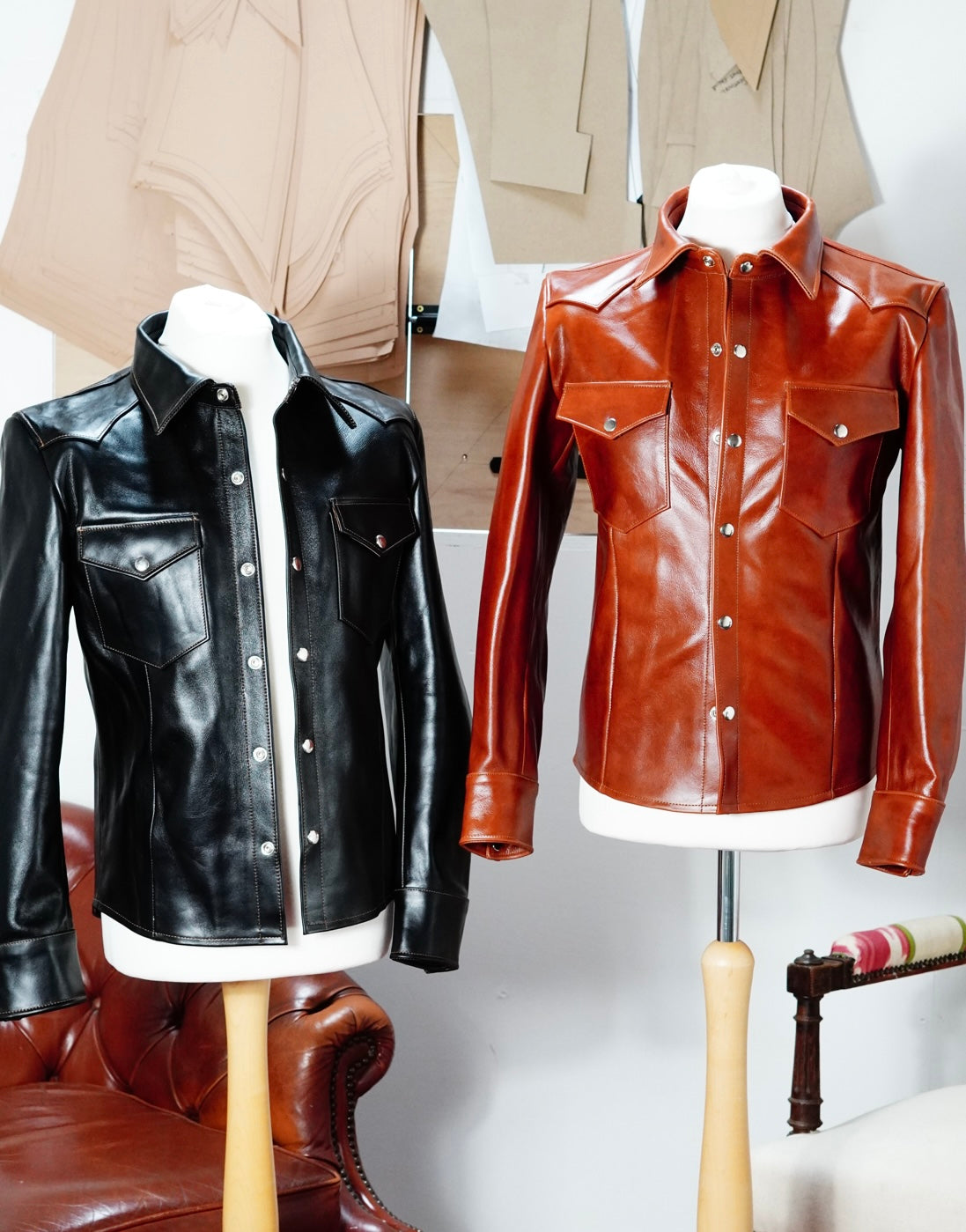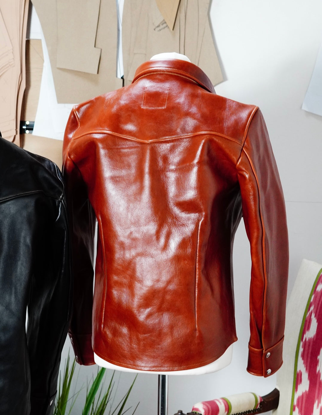 The Kaji Workshirt is unlined, allowing the leather to breathe and mould naturally to your body. It’s finished with nickel poppers down the front and on the tapered cuffs, offering a clean, purposeful look with a subtle nod to Western heritage.
