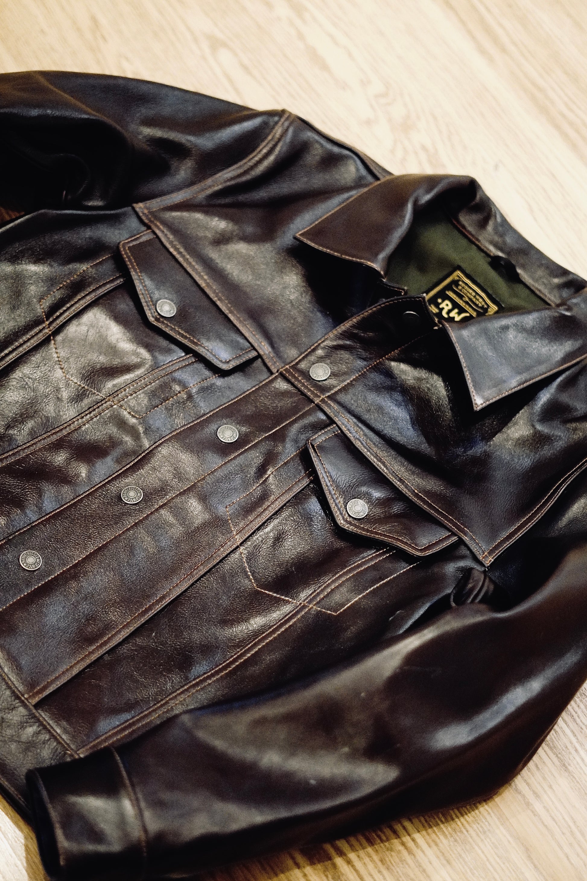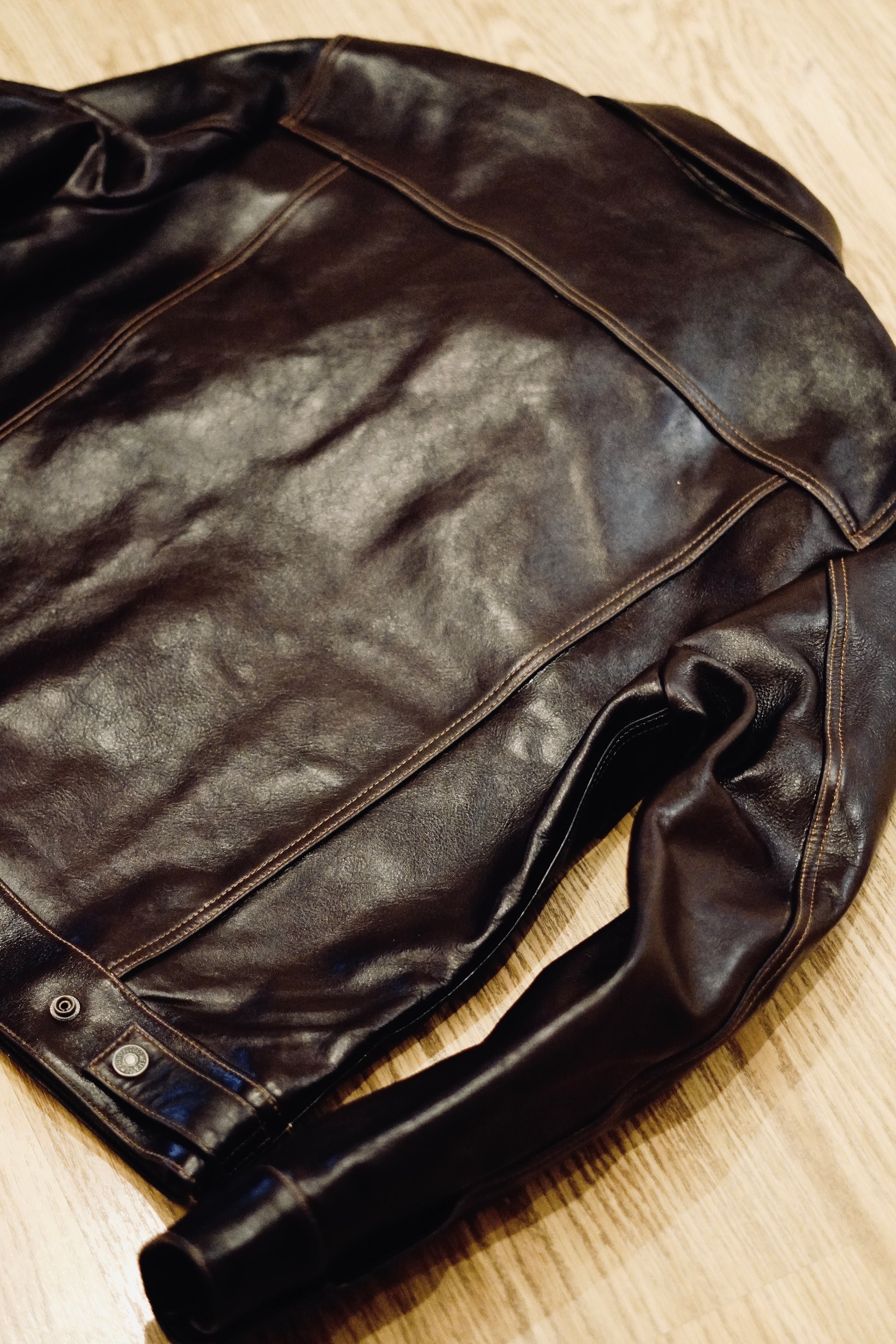 It’s made from a brand-new steerhide that I spent months developing with the tannery. At 1.4mm thick and weighing in at 3.5oz, this hide is rich with oil and features a gorgeously irregular grain. It’s the most beautiful leather I’ve ever worked with. This jacket is built to age slowly, gracefully, and honestly. Just as it should.
