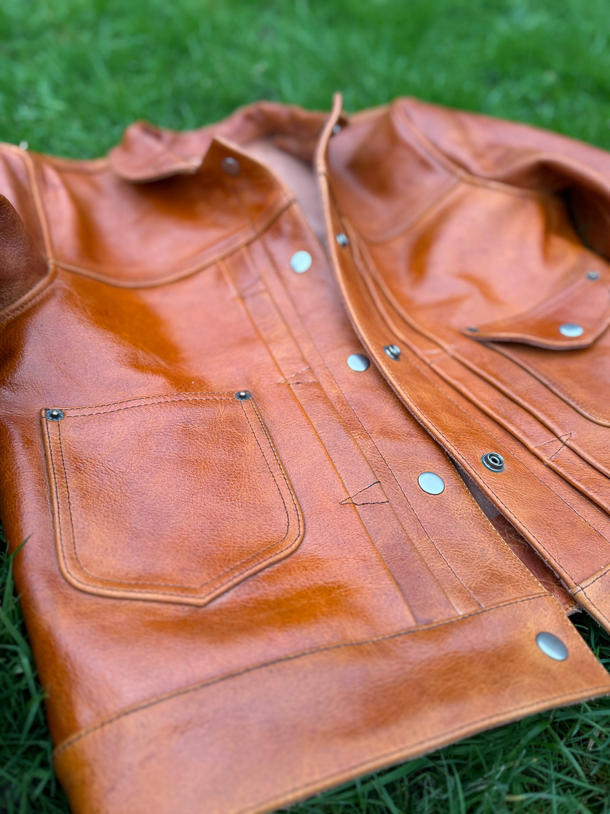 Inspired by my trip to a Western ranch in Ojai, California last month - this jacket has been a total labor of love. It’s crafted from 3.5oz steerhide in Blackened Brown Teacore.